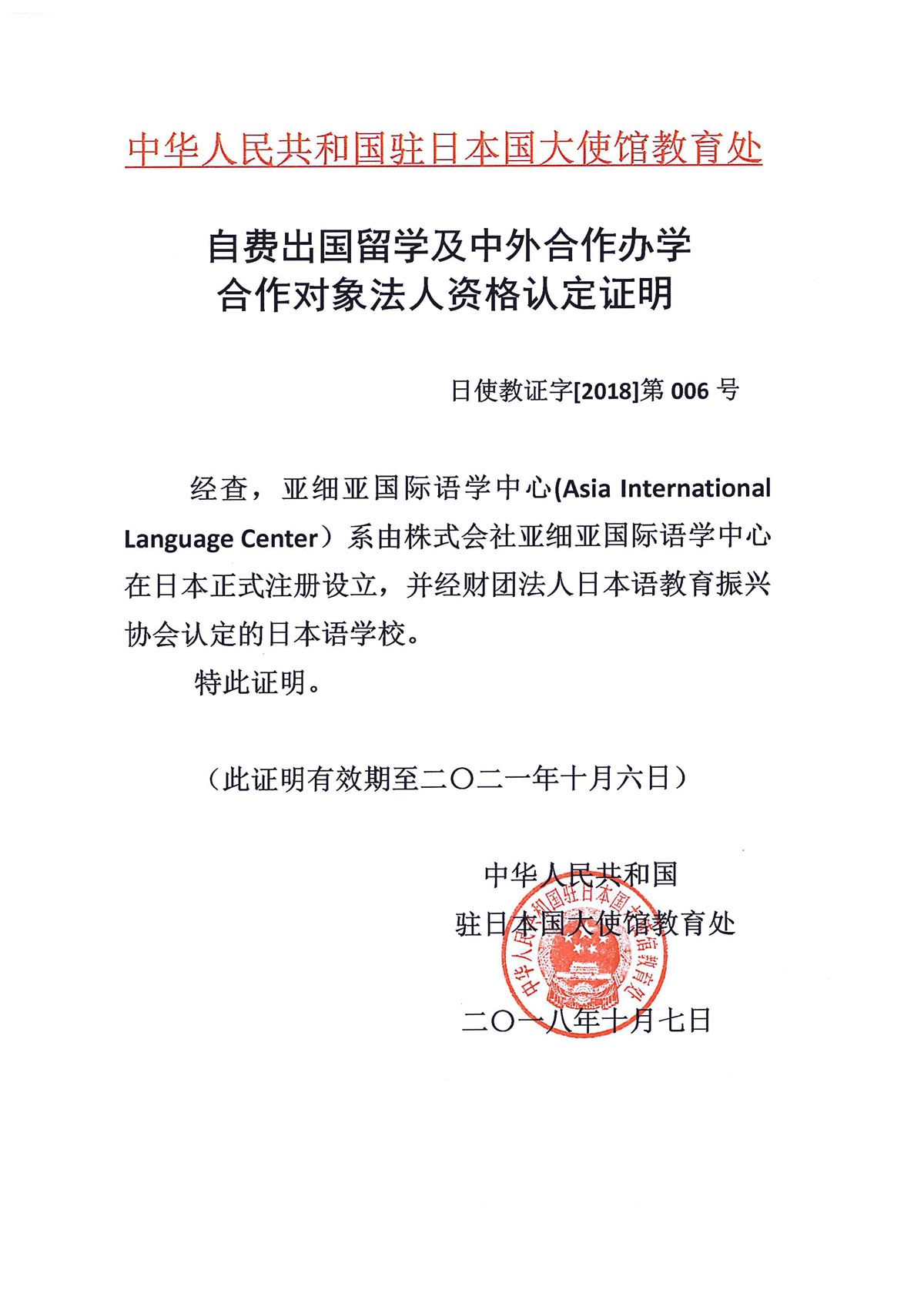 - Accredited by the Education Section of the Chinese Embassy in Japan